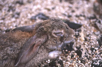 Ejemplar de conejo de nuestros terrenos afectado por la mixomatosis.