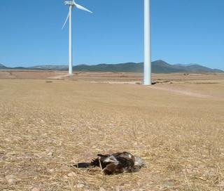 Águila culebrera matada por un parque eólico en Aragón, España. Cortesía de: "Desde el Sekano"