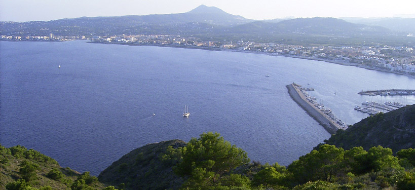 Más allá de lo que la vista alcanza, tenemos Dénia, con el macizo rocoso del Montgó, y el cabo de San Antonio que se pierde con la bruma marina.