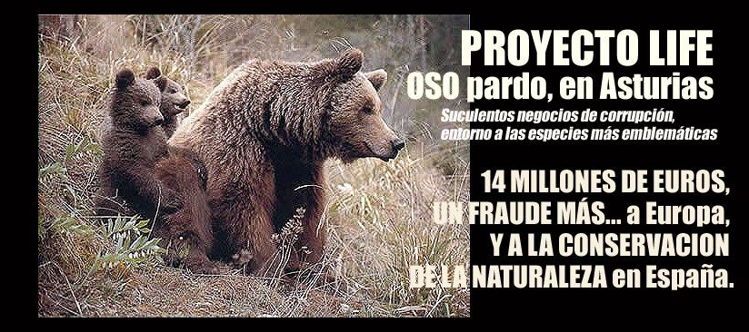 El reciente Proyecto Life para la conservación del oso presentado a la Unión Europea bajo el paraguas del Ministerio de Medio Ambiente, Medio Rural y Marino se escuda en un intento de reintroducir osos en los Pirineos, intento que en realidad enmascara una intención desesperada de obtener dinero, ante lo que se prevé como un futuro negro en materia de financiación para mantener estructuras administrativas y funcionariales que en nada o muy poco van a repercutir en la verdadera necesidad de conservación del oso.